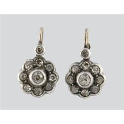Pest, 1920 körül, 14 k arany és ezüst, rozetta forma, 20 db briliánssal, cca 1 ct, R2CrSi, hagyományos patentzárral, 3,3 g