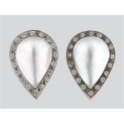 20. sz. utolsó harmada, 14 k arany, fémjel nélkül, 36 db briliánssal, cca 1 ct, MTCrSi, 2 db cseppalakú gyöngyházzal, klipszes zárral, br. 13,1 g