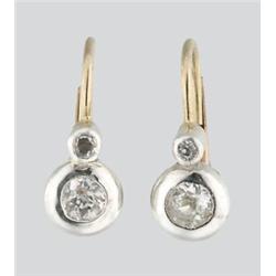20. sz. elso harmada, 14 k arany és ezüst, boutone foglalásban 4 db briliáns, cca 0,40 ct, R2CrSi, patent zárral, 2,2 g