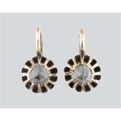 19. sz. közepe, 14 k arany, karmos foglalásban 2 db gyémánt, cca 0,15 ct, patent zárral, 2,7 g