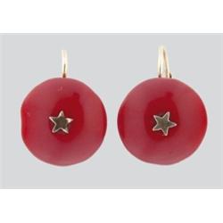 Pest, 19. sz. vége, "HH" mesterjegy, 14 k arany, piros porcelán lencse dísszel, patent zárral, br. 3,9 g