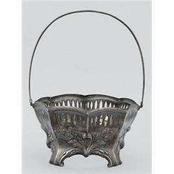 német, 20. sz. eleje, ezüst, 1902 - 1937 közötti behozatali jegy, préselt nyolcszögletes forma, áttört levélmintás oldallal, pótolt üvegbetéttel, 210,8 g; m: 25 cm