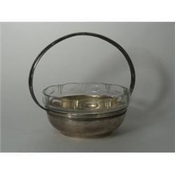 Ezüst, 187 g. Kerek forma, domborított bordurrel, csiszolt díszítésu üvegbetéttel, Jelzett: feloldatlan fémjelzéssel, 1930-as évek, JM mesterjellel