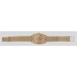 Svájc, 20. sz. utolsó harmada, 18 k arany jelzésu szögletes tok, "Omega automatic", 24 köves muködo anker szerkezet, számlap szerkezet jelzett, tokszám:153014, csat 14 k arany jelzésu milanéz fazon, br. 76 g
