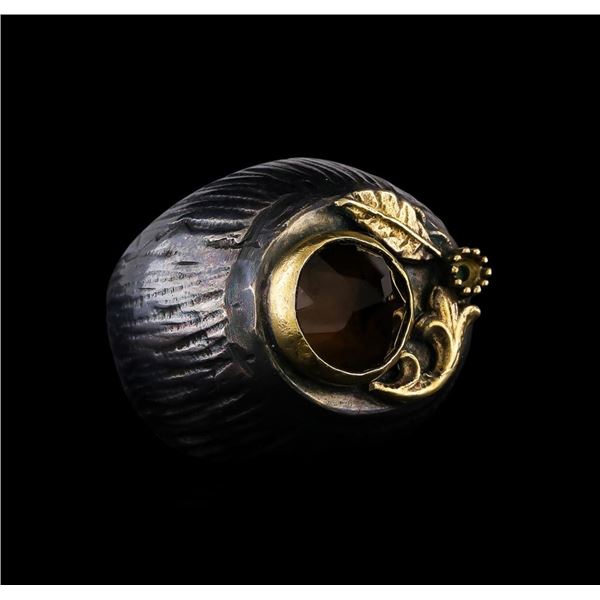 One of a kind high fashion sterling silver Ring weighing 15 grams. Black Antique texture. Containing: Smoky Quartz. This sterling silver promises a la