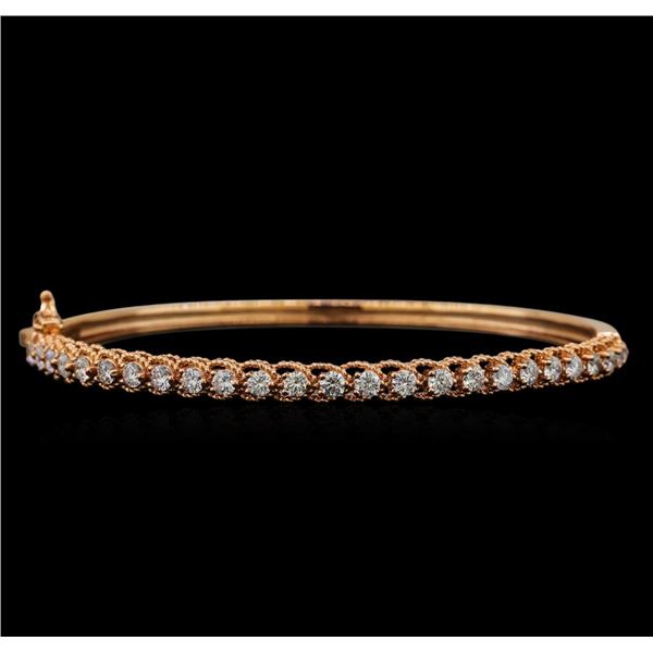 One electronically tested 14KT rose gold ladies cast diamond bangle bracelet with a hidden box clasp with safety closer with a bright polish finish. I