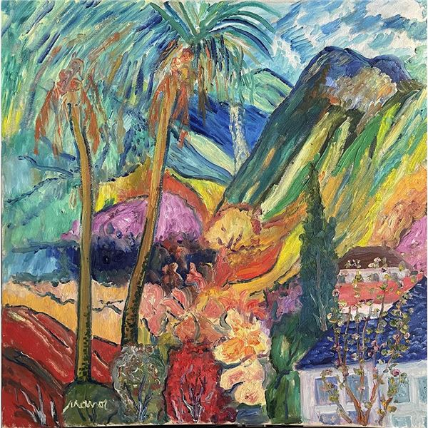 Peaceful Garden by Bonnec, Alain. Limited Hand Signed Embellished Giclee on Canvas Stretched. Dimensions: 21.5 x 18. Excellent Condition.