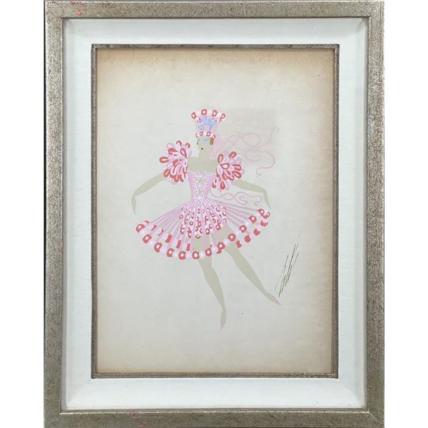 LES GIRLS by ERTE. Original One-of-a-Kind Hand Signed Gouache Framed. In line w age. Dimensions: 14 x 10. Good Condition.