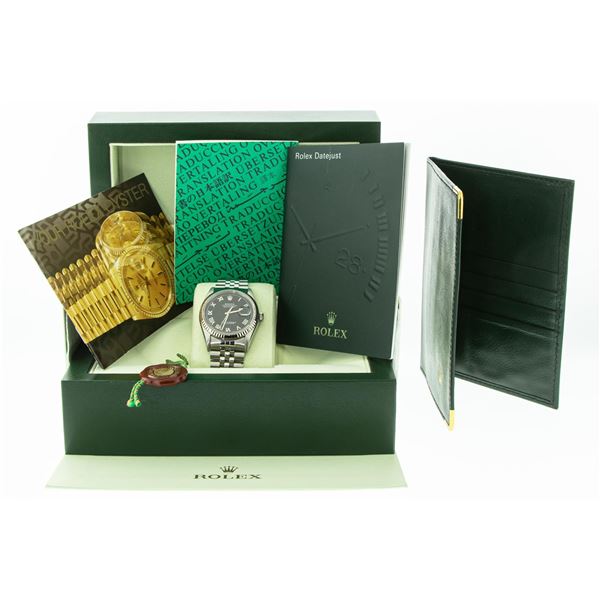 Rolex Mens Stainless Steel Black Roman 36MM Datejust Wristwatch With Box834 - Rolex Mens Stainless Steel Black Roman 36MM Datejust Wristwatch With Box