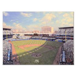 "Yankee Stadium" is a limited edition hand embellished giclee on stretched canvas by Thomas Kinkade (1958-2012), numbered and bearing Kink...