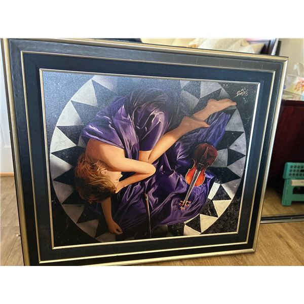 A beautiful modernist image of a violinist exhausted after rehearsal. DELLORCO signed this 30x36" giclee on canvas beautifully framed to 44.75x...