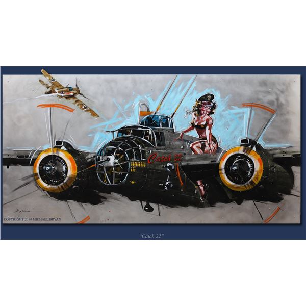 Michael Bryan "Catch 22" is a 20x40" Unique handworked giclee on canvas 1/1 Features the famous WWII twin-engine B-24 fighter .