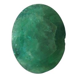 One oval mixed cut natural emerald, measuring 12.00 x 9.00 x 5.00mm, exact weight 3.72ct., clarity is heavily included, type III, medium dark, very s