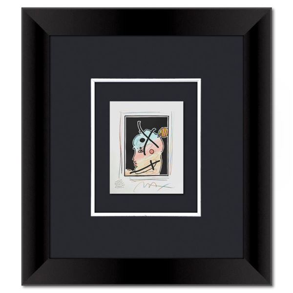 This is a one-of-a-kind mixed media on paper, hand signed by Peter Max. The piece comes custom framed with a backside cutout to display Peter Max Stud