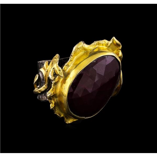 One of a kind high fashion sterling silver Ring weighing 34 grams. Black Antique texture. Containing: Ruby. This sterling silver promises a lasting sh