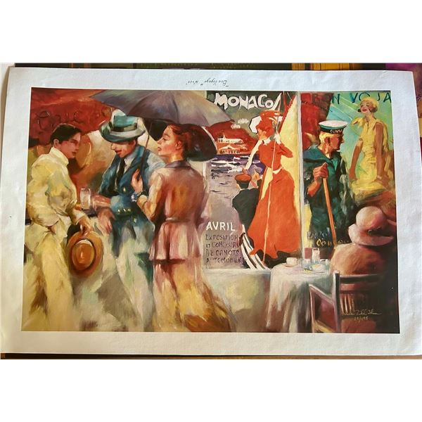 A classical traveler scene hand-signed by Maria Zielinska. "Bon Voyage" depicts travelers bustling to & for on their way across Europe...