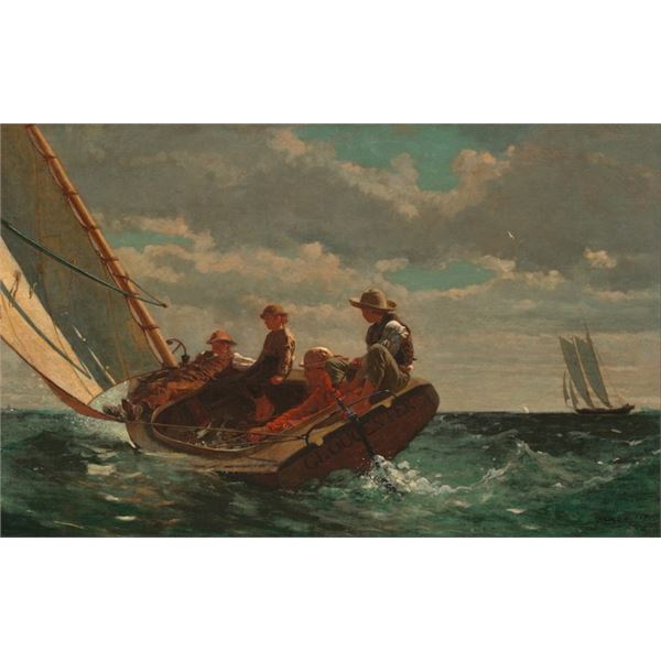 Artist: Winslow Homer - Title: Breezing Up - Medium: Fine Art Giclee on Canvas - Image Size: Approximately 20 inches x 32 inches - Framed: Unframed