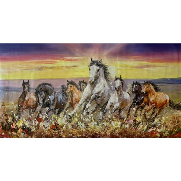 This is an original painting, acrylic on canvas by Moshe Leider. The piece is hand signed by the artist and includes a letter of authenticity. Measure