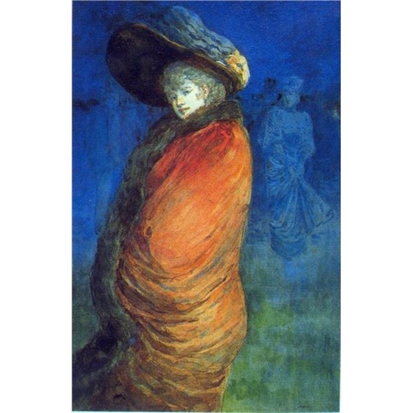 Artist: Francois Clement (Henri) Sommier - Title: Red Overcoat - Medium: Fine Art Reproduction Giclee on Canvas - Image Size: Approximately 20 inches