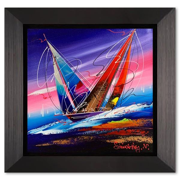This is a custom framed original acrylic painting on canvas by Natalia Sinkovsky. Hand signed by the artist, the piece includes letter of authenticity