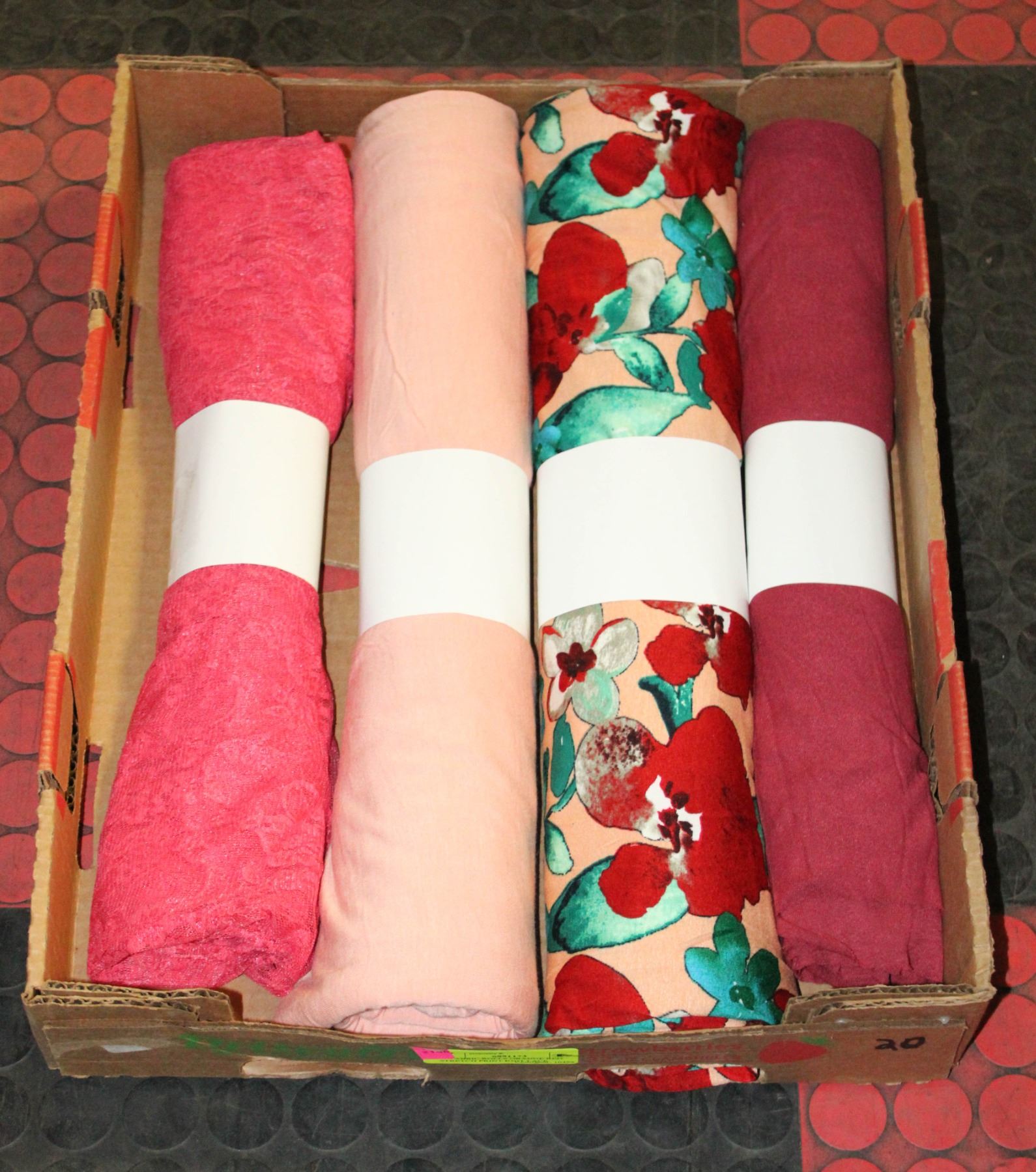FABRIC ROLLS ORANGE RED STRETCH PRINT KNIT LACE