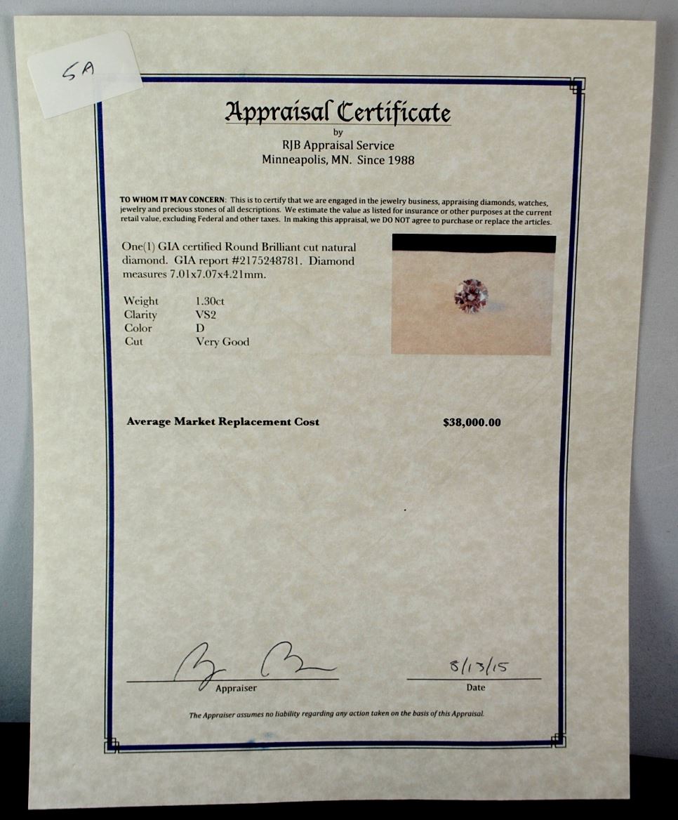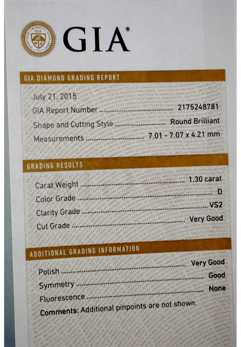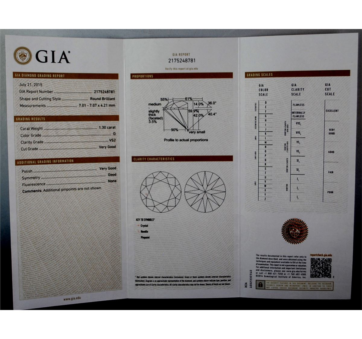 FABULOUS 1.30CT VS2 CLARITY, D COLOR (THE BEST THERE IS) ROUND BRILLIANT CUT LOOSE DIAMOND - COMES WITH THE GIA (THE MOST HIGHLY REGARDED GEMOLOGY LAB IN THE COUNTRY). ONE GIA CERTIFIED ROUND BRILLIANT CUT NATURAL