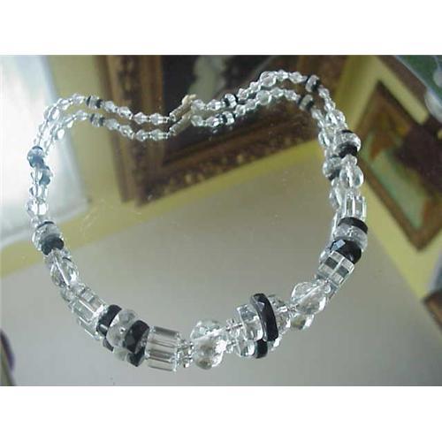 Beautiful circa 1920-30s art glass Art Deco necklace. It looks to be a Czech glass with a very strong Deco styling with gorgeous combination of crystal and black glass, the crystal having strong Deco shapes from squares to cylindrical . This lovely vintage necklace is a single strand that measures 16 ½ inches in length. The necklace is in very nice condition, (may require restringing in the future) perfect to enjoy wearing and adding to your collection of vintage jewelry. Please view our other vintage costume jewelry we have listed.