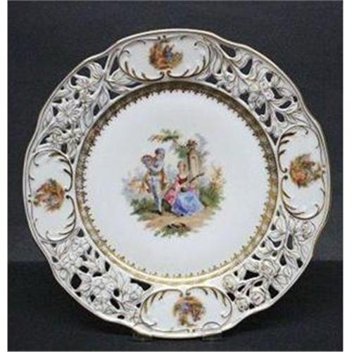 FANTASTIC, as per images - PLATE, PARTIALY HAND PAINTED, ORNATE, ART NOUVEAU STYLE, WITH GORGEOUS PIERCING AND ADORNED WITH BEAUTIFUL GOLD GILT, Excellent condition, no chips or cracks, US Buyer to pay 14.00 (It is very heavy) for shipping plus insurance, Measures about 10 3/4" in diam. THANKS.