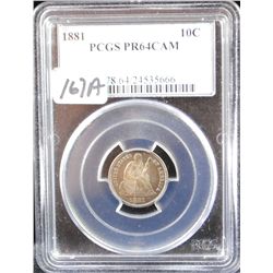 RARE 1881 SEATED LIBERTY DIME - PCGS PR64CAM (COIN WORLD LISTS A MS65 @ $2,000.00)