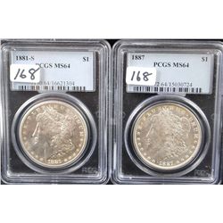 1881-S & 1887 MORGAN DOLLARS - PCGS MS64 - SOLD PER COIN TIMES 2