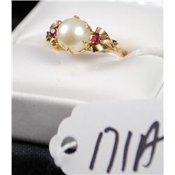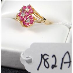 LADIES 14K YELLOW GOLD RUBY & DIAMOND RING WITH TWELVE RED RUBIES AND THREE DIAMONDS - WEIGHS 3.8 GRAMS - APPRAISED RETAIL REPLACEMENT IS $1,...
