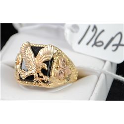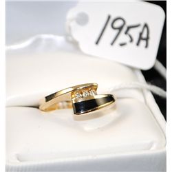 WOMENS 14K YELLOW GOLD DIAMOND AND ONYX RING WITH THREE ROUND FULL CUT DIAMONDS AND CHANNEL SET BL