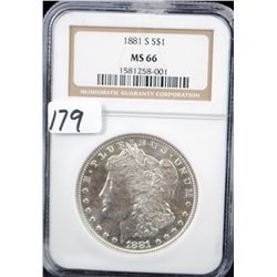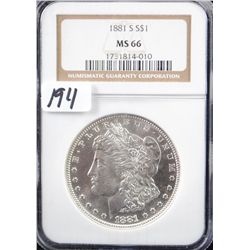 1881-S MORGAN DOLLAR - NGC MS66 (COIN WORLD LISTS A MS66 @ $500.00)