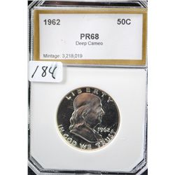 1962 FRANKLIN HALF DOLLAR PCI PROOF 68DEEP CAMEO (A PROOF 68 DEEP CAMEO LISTS @ $600.00)