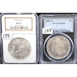 1882-0 MORGAN DOLLAR - PCGS MS64 & 1902-0 MORGAN DOLLAR - NGC MS64 - SOLD PER COIN TIMES 2