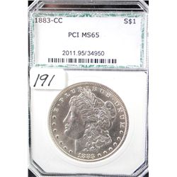 1883-CC MORGAN DOLLAR PCI MS65 (COIN WORLD LISTS A MS65 @ $500.00)