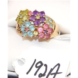 WOMENS 14K YELLOW GOLD MULTI COLORED STONE RING - APPRAISED RETAIL REPLACEMENT IS $2,800.00 - COME