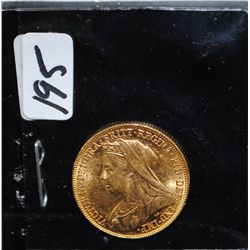 EARLY 1899M VICTORIA GOLD SOVERIEGH - SELLER GRADED @ BU