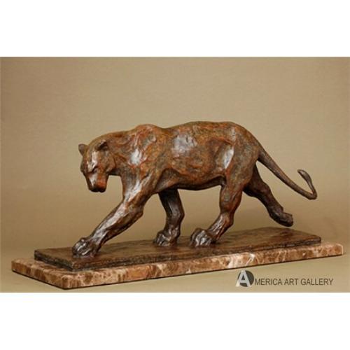 EXQUISITE! SLEEK PANTHER, BRONZE SCULPTURE BY