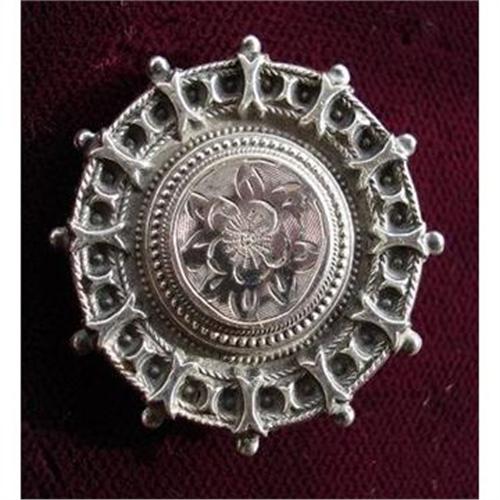 FABULOUS STERLING VICTORIAN BROOCH, MADE IN LOVELY ETRUSCAN STYLE, IN EXCELLENT CONDITION NOTHING MISSING, as per images - Measuring close to 1 1/4" in diam., US Buyer to pay 7.00 for shipping plus insurance.THANKS.