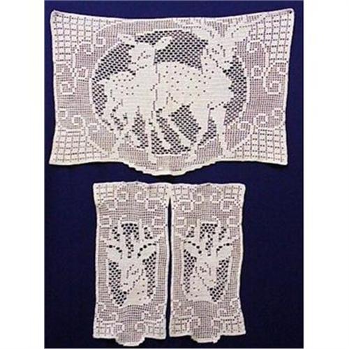 BEAUTIFUL CROCHETED FILET LACE, 3 PIECE CHAIR OR SOFA SET, EXCELLENT CONDITION,MEASURES ABOUT 17" X 11" AND THE SMALLER PIECES, EACH, 11 3/4" X 5 1/4", US BUYER TO PAY 4.00 FOR SHIPPING PLUS INSURANCE.THANKS.