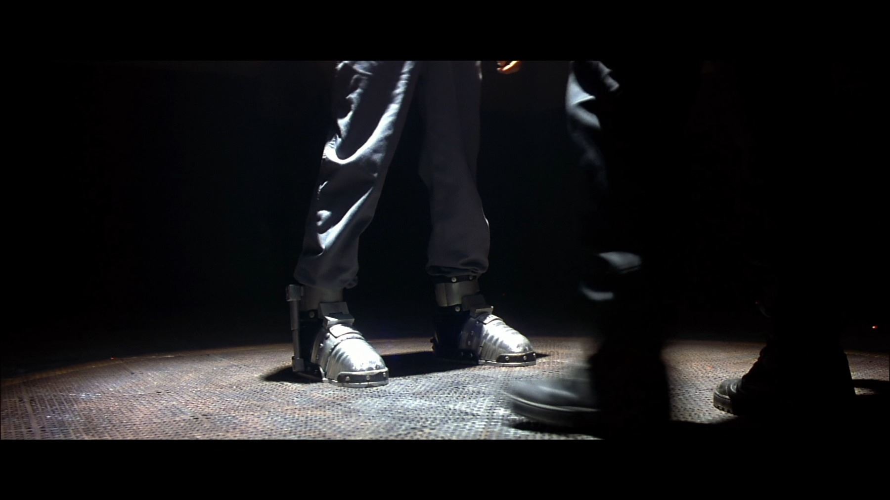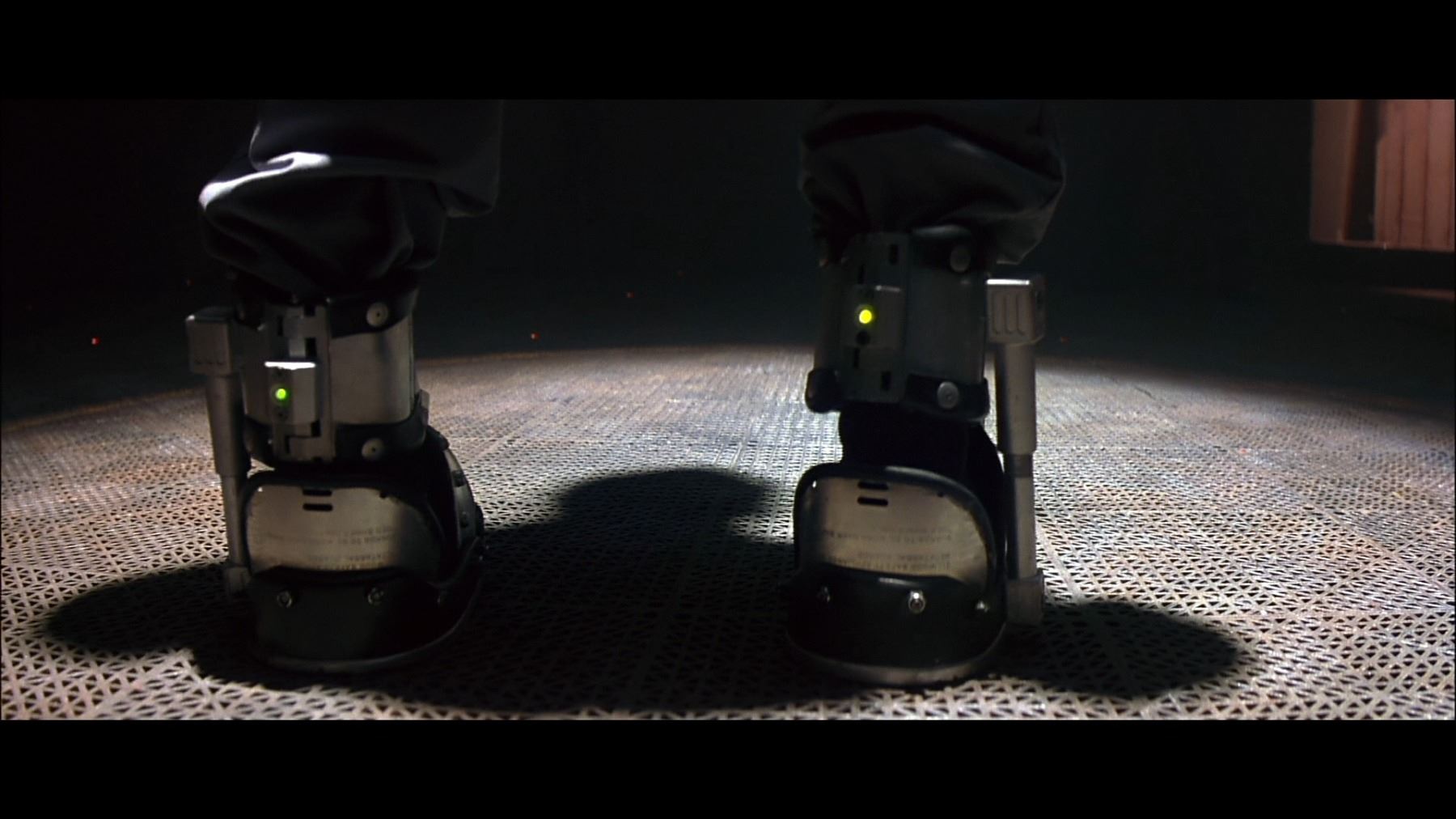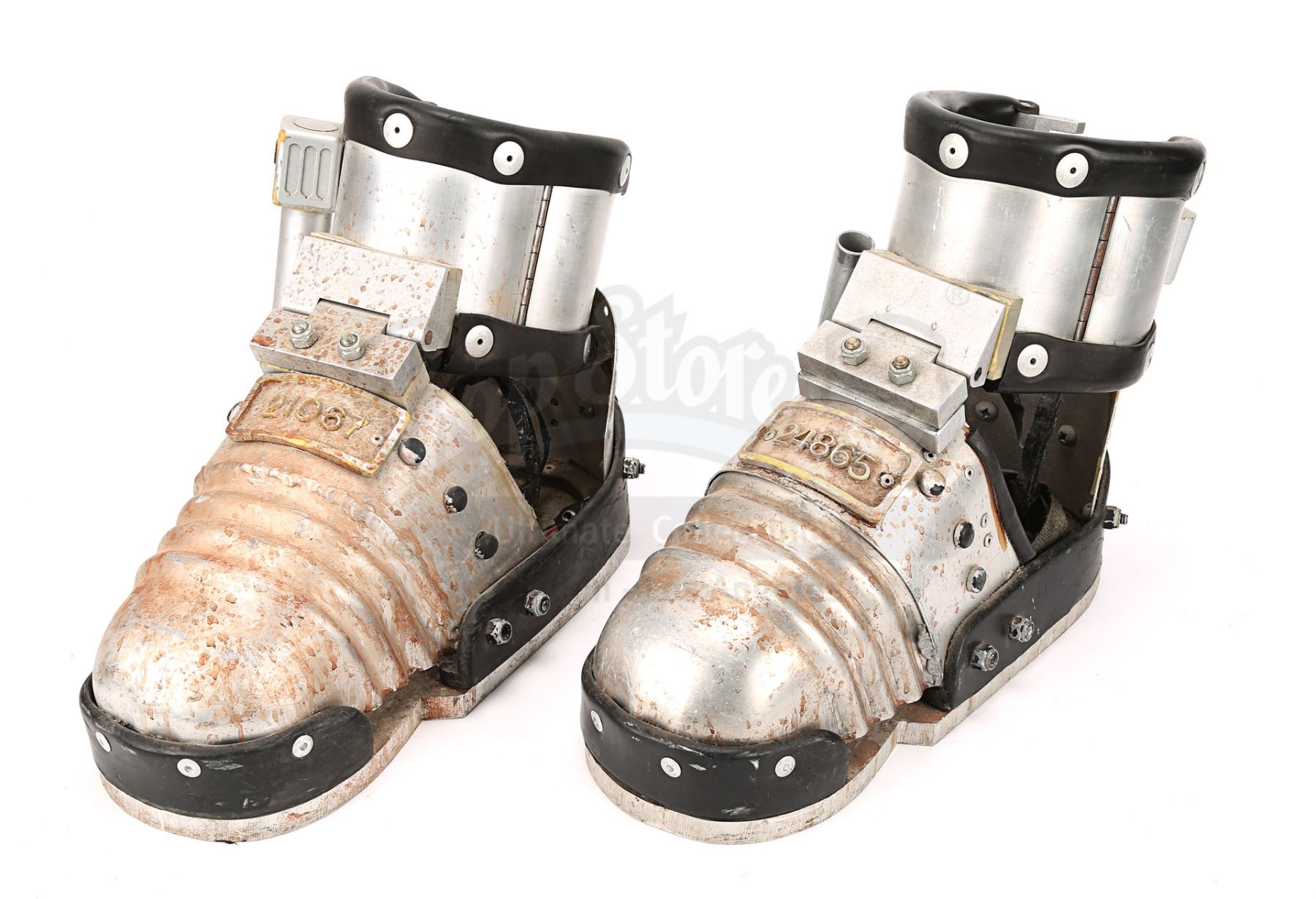 A pair of light-up magnetic prisoner boots from John Woo's action film Face/Off. Sean Archer/Castor Troy (Nicolas Cage) and other prisoners wore magnetic boots in the high-security prison Erewhon.