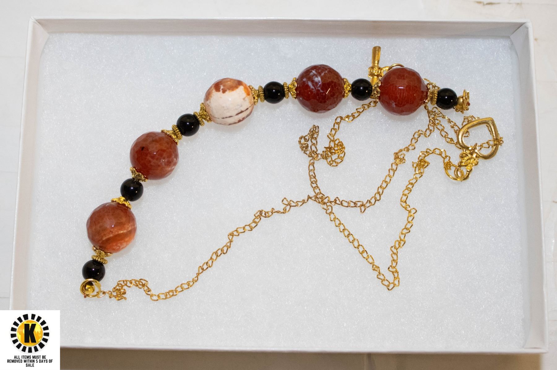 FACETED CARNELIAN ONYX NECKLACE 24"