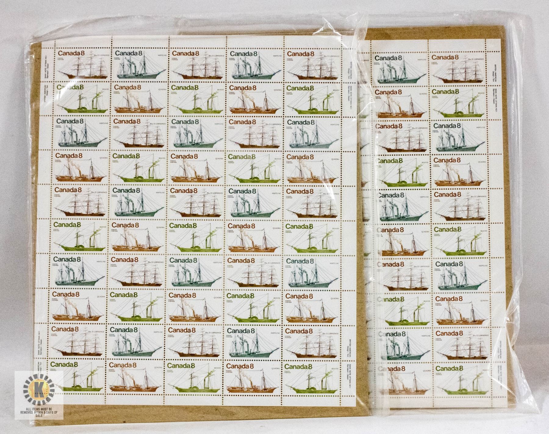 CANADA POST 8 CENT STAMP PANE'S UNCUT COASTAL SHIPS **ALL ITEMS MUST BE REMOVED BY 5PM SATURDAY, APRIL 26TH 2025. ALL REMAINING ITEMS WILL BE SUBJECT TO A $6.00 PER DAY STORAGE CHARGE. ANY ITEMS REMAINING AFTER MONDAY, MAY 12TH 2025 WILL BE CONSIDERED FORFEITED. NO REFUNDS WILL BE ISSUED FOR FORFEITED ITEMS. TO SCHEDULE A PICK UP APPOINTMENT CLICK HERE