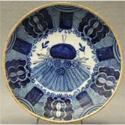 TALLRIK, FAJANS, BLÅ STILISERAD BLOMDEKOR, BILAN, DELFT 1700-TAL, D23, GOD KONDITION