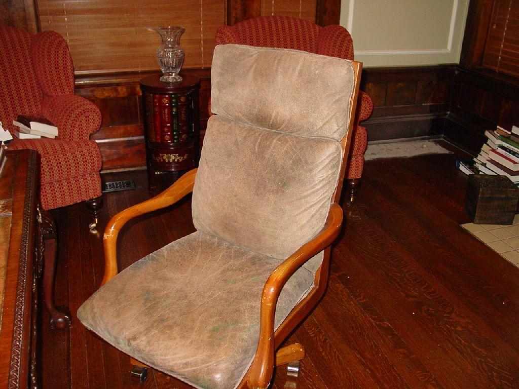 FAIRFIELD WOODEN AND LEATHER DESK CHAIR ROLLS AND SWIVELS