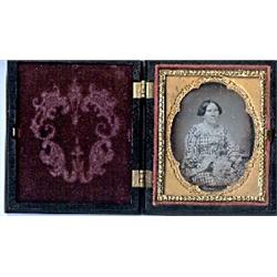 1/9 plate daguerreotype in scalloped mat, seated woman with bracelets, her hands clasped on her lap