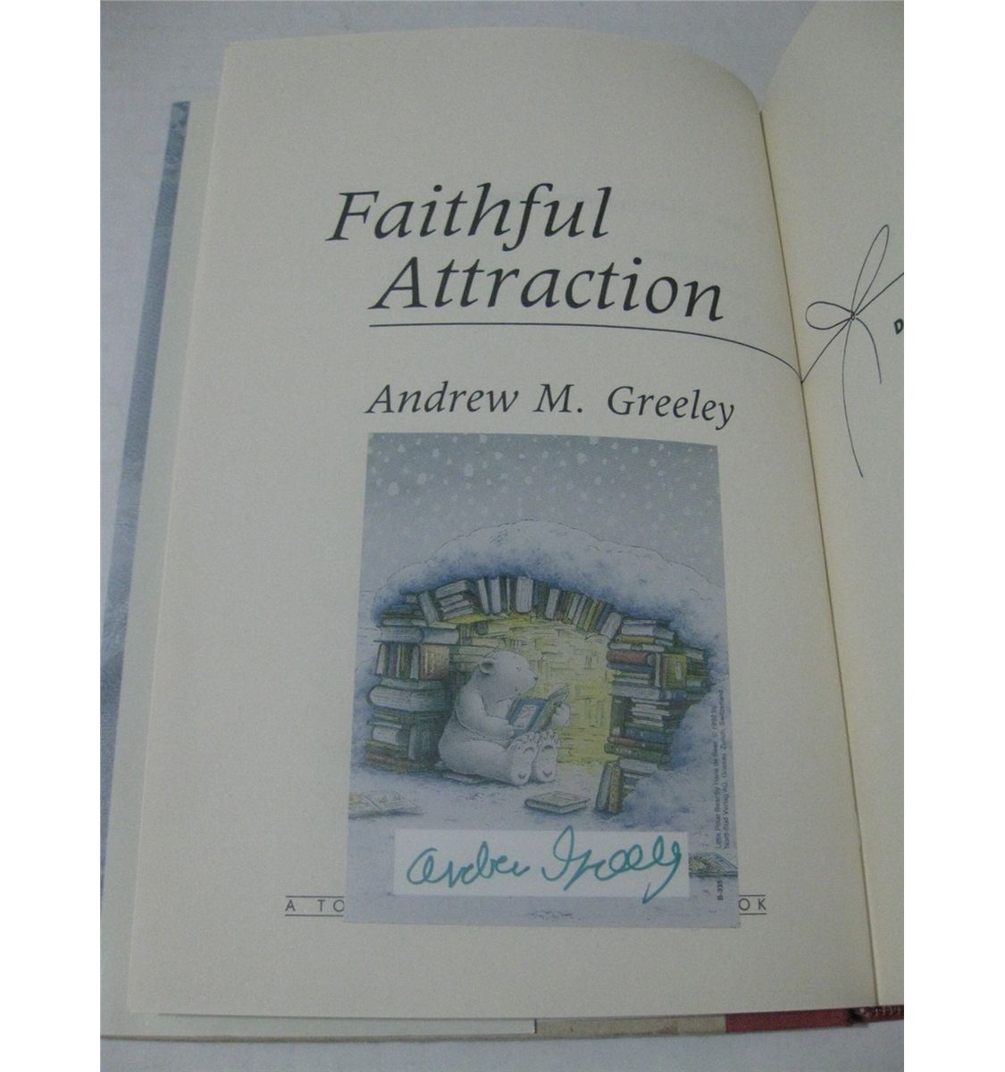 FAITHFUL ATTRACTIONS Discovering Intimacy, Love and Fidelity in American Marriage Hardcover Book HAND SIGNED by Andrew Greeley on a book plate in green felt pen and affixed to the full title page. The book is a former library book.EX condition
