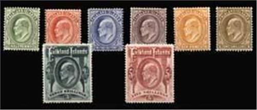 1904-12 ½d to 5s (SG43-50) 2d and 6d odd short perf, large part o.g.
