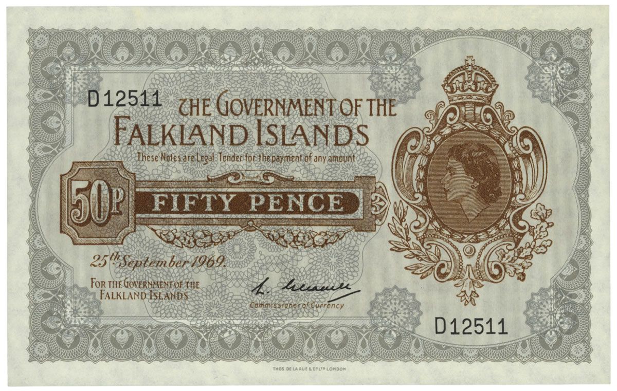 50 Pence 25 Sept., 1969. P.10a. No. D12511. PMG graded GUnc-67 EPQ. An exceptionally high-quality note.